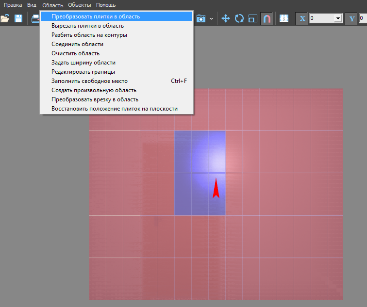 Инструмент «Преобразовать плитки в область» создаёт новую, очищенную от плиток область.